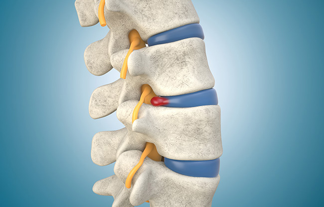 Discs have a jelly-like substance called nucleus pulposus with a more rigid exterior. With time, the outer layer weakens and can crack. A herniated disc happens when the inner nucleus pulposus pushes through the crack. This leaked substance may press nearby spinal nerves. Several factors that can lead to the condition are –